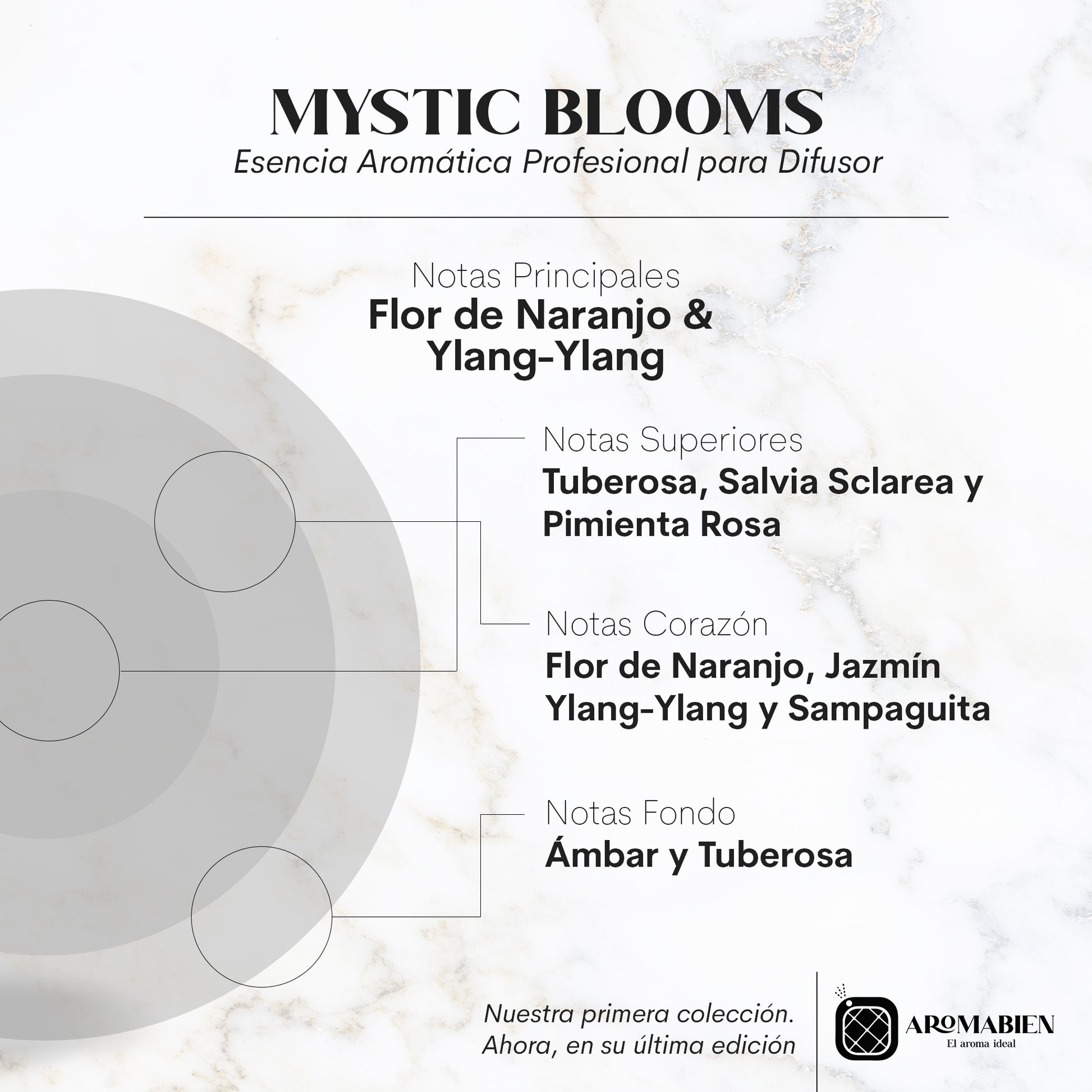 Notas Superiores: Tuberosa, Salvia Sclarea y Pimienta Rosa Notas Corazón: Flor de Naranjo, Ylang-Ylang y Jazmín Sampaguita Notas de Fondo: Ámbar y Tuberosa